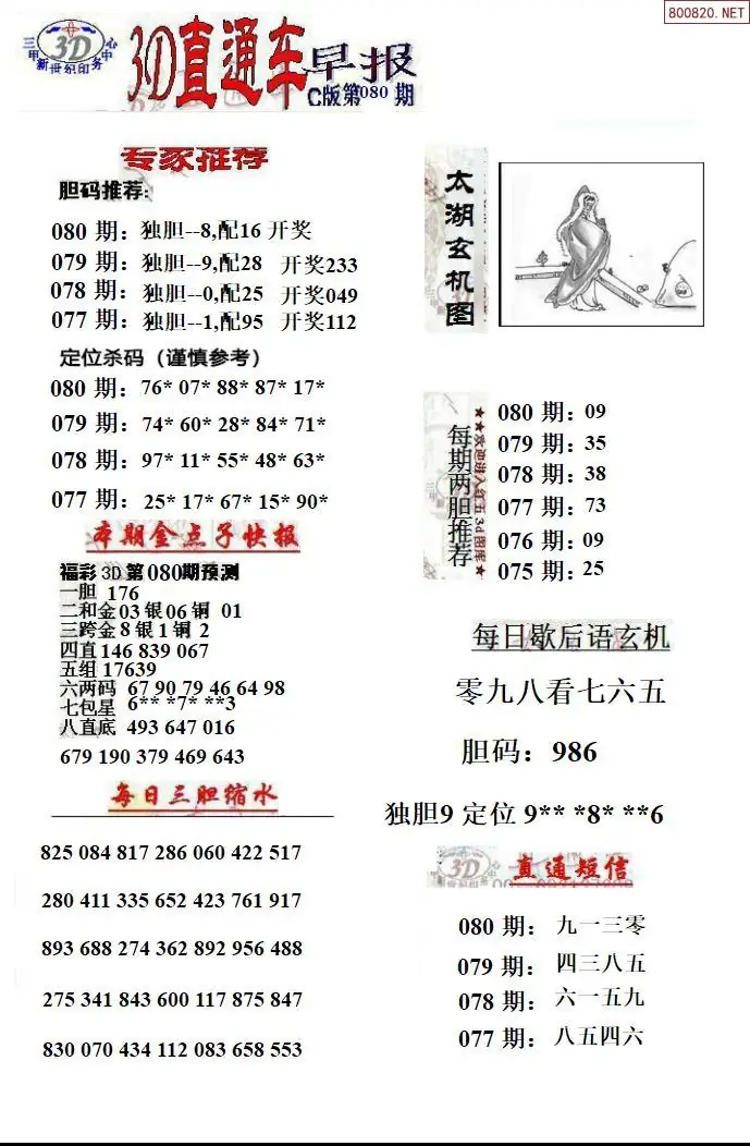 26年080期福彩3D直通车早报ABCD版