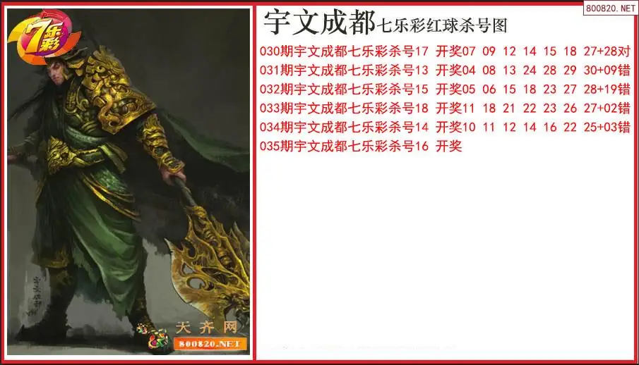 宇文成都2026035期七乐彩红球杀号图