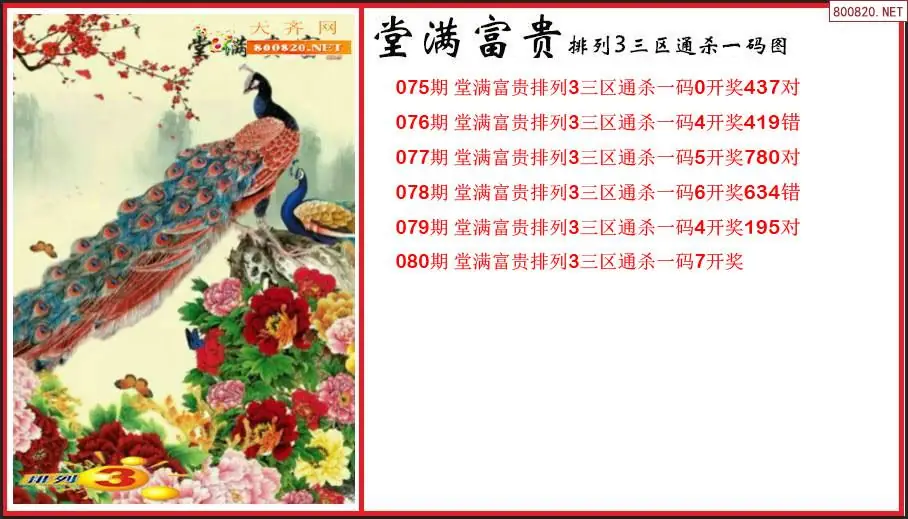 排列3第2026080期堂满富贵杀码图谜(原创)