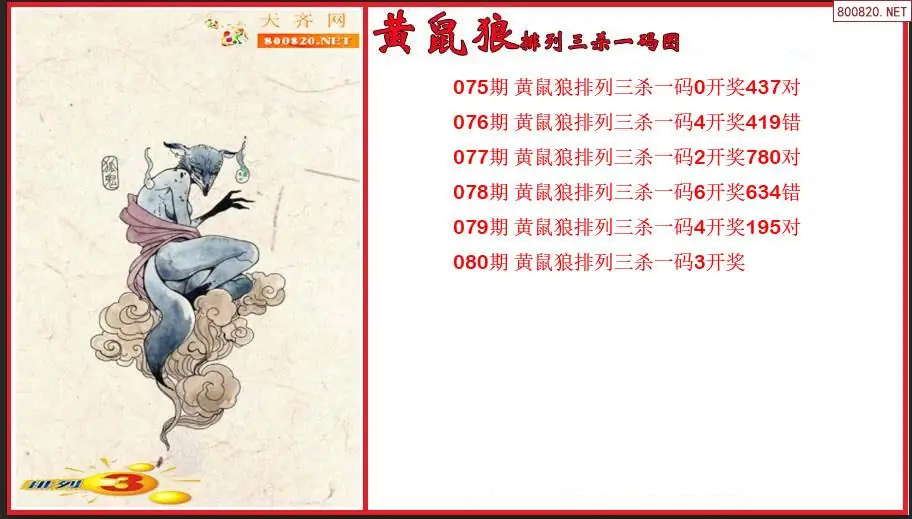 排列3第2026080期黄鼠狼杀一码图(原创)
