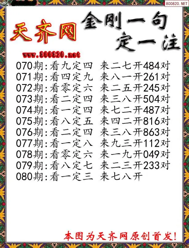 080期3D福彩金刚一句定三码字图谜