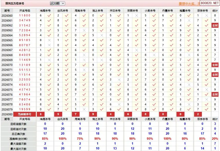 体彩P52026年080期彩经彩票十大专家杀号