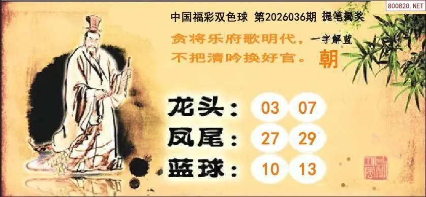 双色球26年036期提笔揭奖龙头凤尾图谜