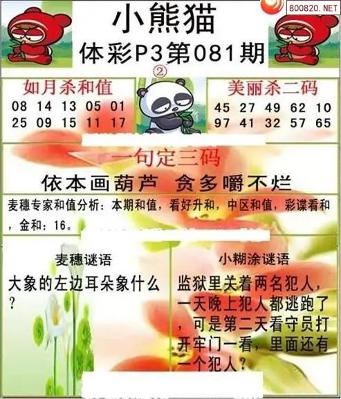 26081期体彩P3小熊猫图迷