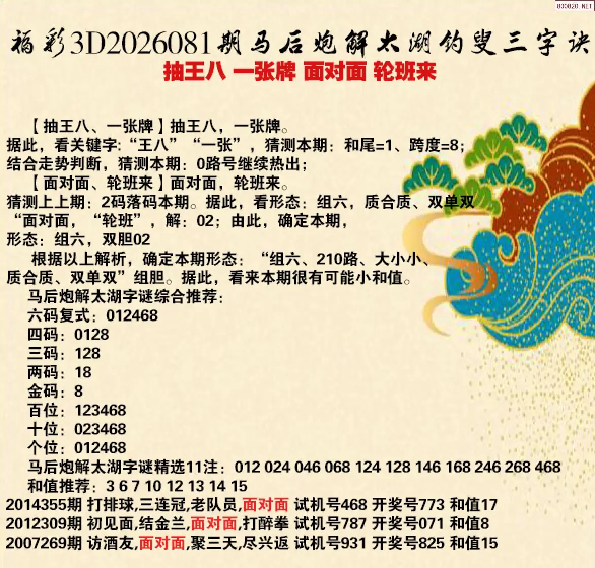 26年081期马后炮解太湖字谜之-抽王八 一张牌 面对面 轮班来
