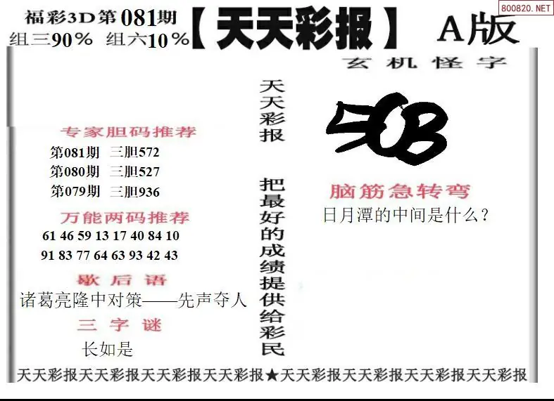 26081期福彩3D天天彩报A版 天天彩报B版