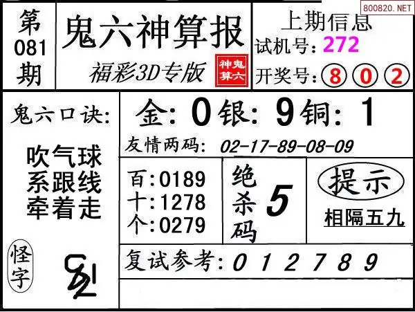 鬼六图26081期鬼六神算报+鬼六胆码图迷