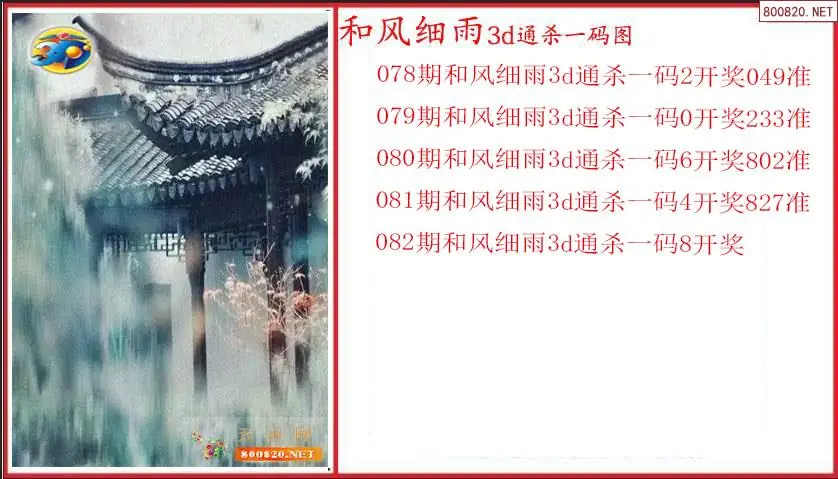 和风细雨2026082期3D通杀一码图(原创)