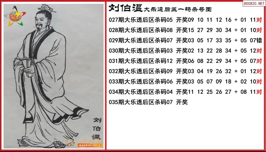 刘伯温2026035期大乐透后区一码杀号图-原创