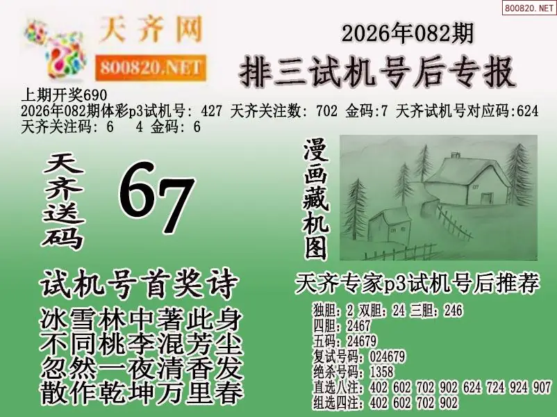 2026年082期体彩p3试机号后天齐网专报