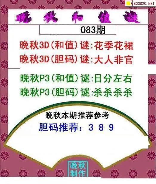 晚秋图26083期3d晚秋和值迷图谜版