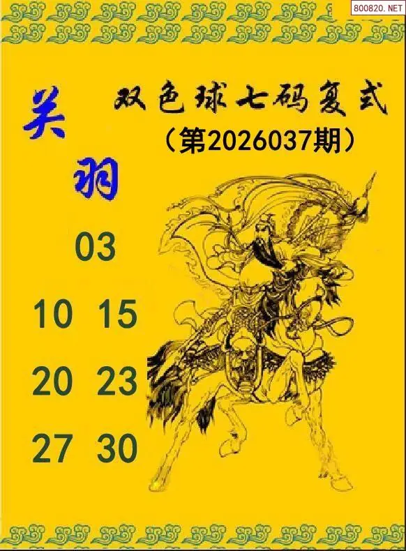 双色球26年037期关羽七码小复式图谜