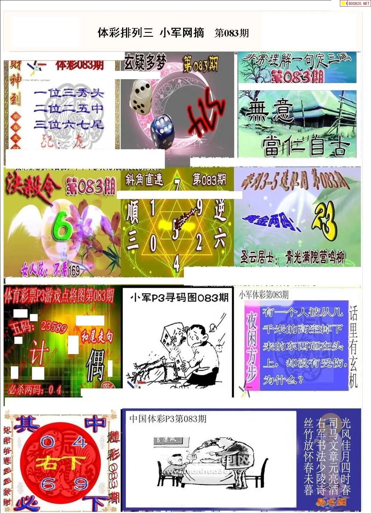 小军网摘26年083期体彩P3彩报