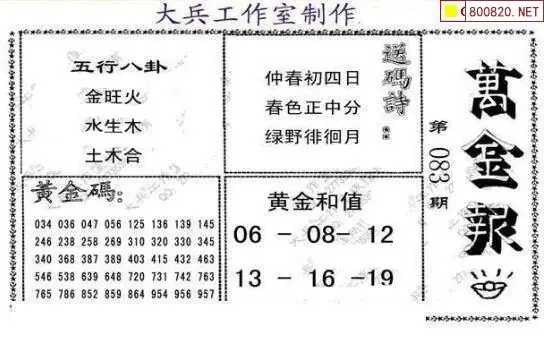 大兵图26083期万金报黄金报望月图谜
