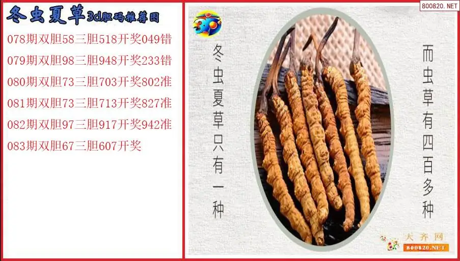 冬虫夏草2026083期3d胆码推荐图(原创)