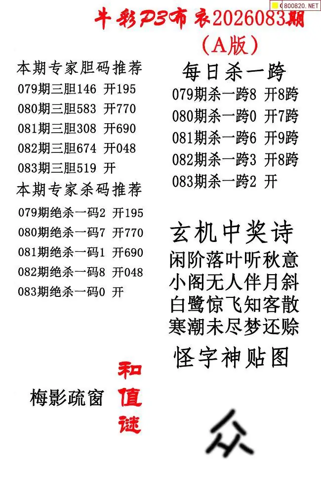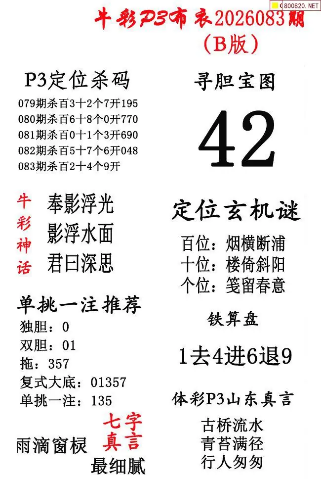 牛彩体彩P3布衣2026年083期AB版图谜(精华版)