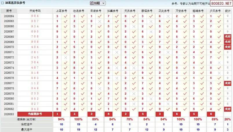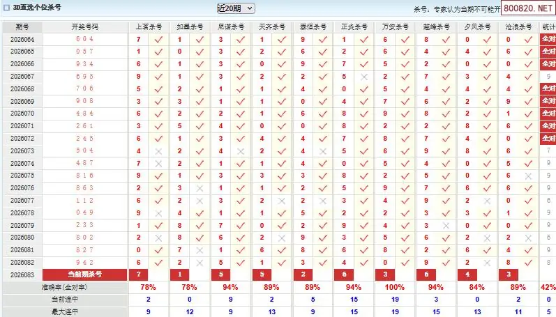 福彩3d26年083期澳客专家杀直选号码