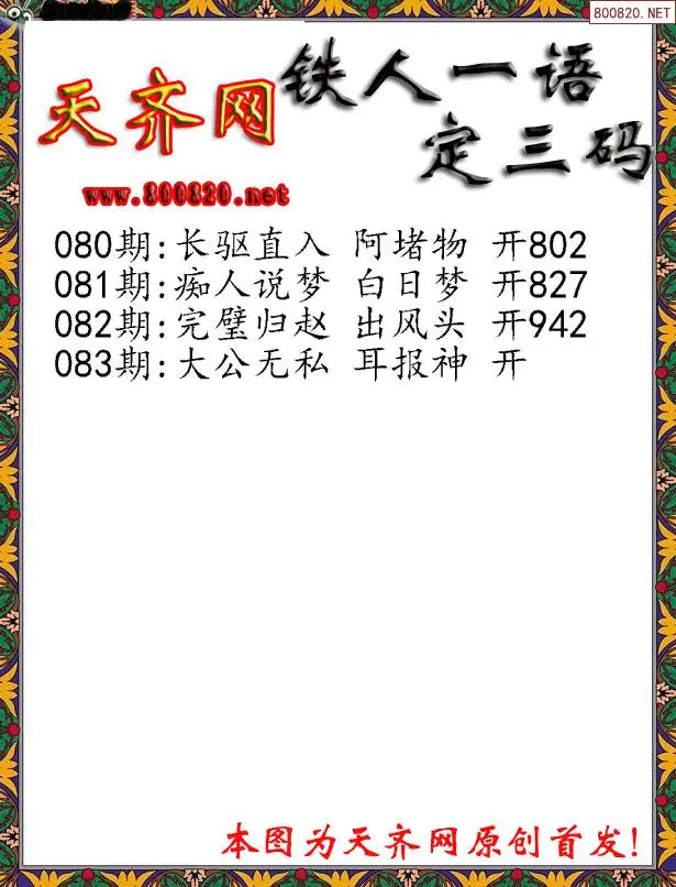 083期3D铁人一句定三码字图谜