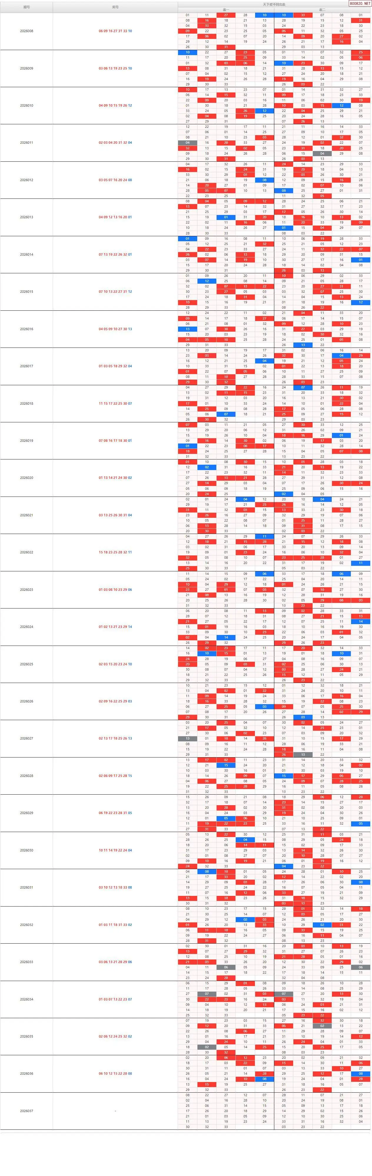 双色球26037期天下帮不同出号图表