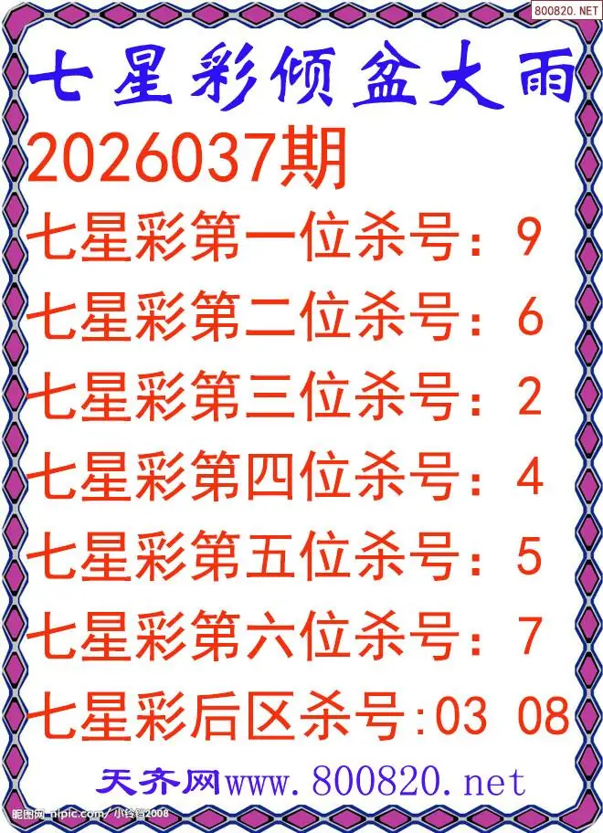 倾盆大雨26年037期七星彩杀号图谜