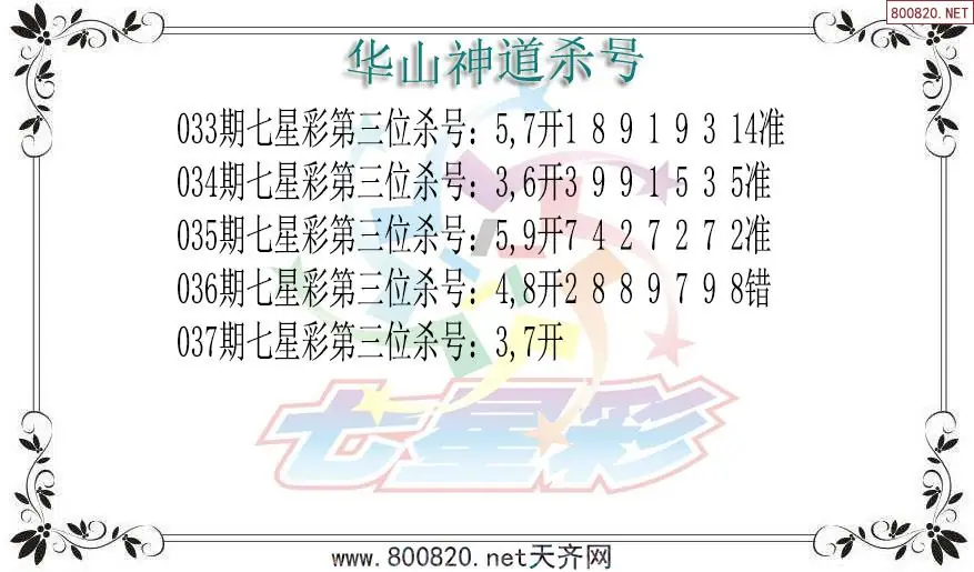 华山神道26年037期七星彩杀号图谜