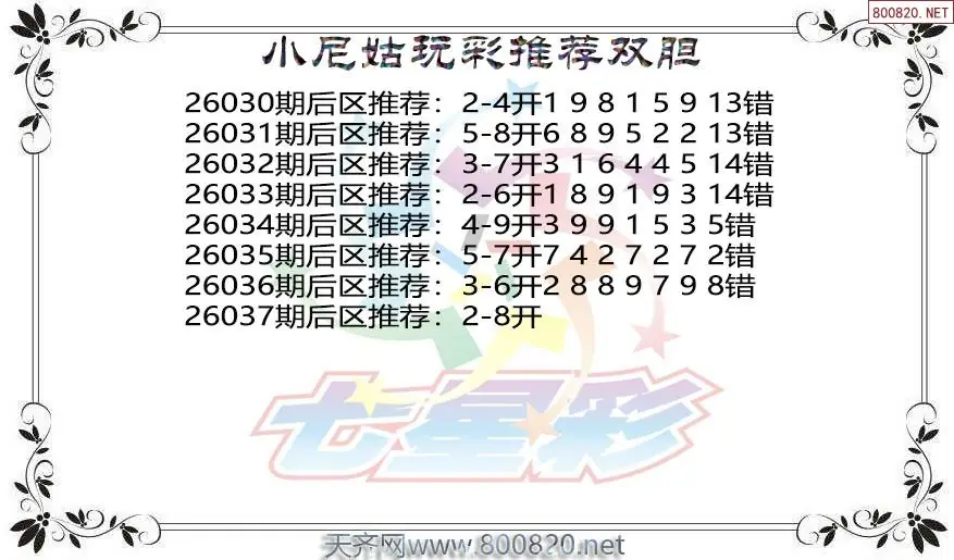 毒霸26年037期七星彩杀号图谜