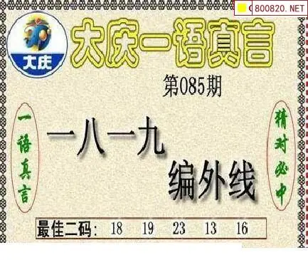 大庆图26085期大庆五码+一语真言黑胆3d图谜