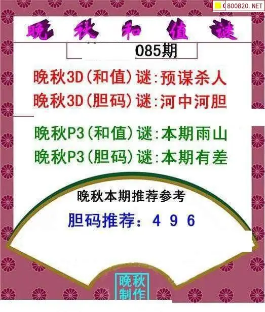 晚秋图26085期3d晚秋和值迷图谜版