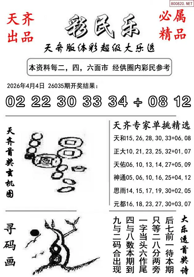 7 26年036期天齐版大乐透彩民乐图谜
