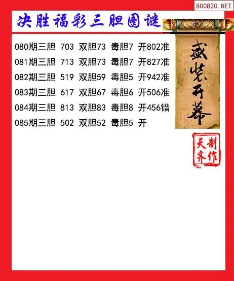 26年085期决胜福彩三胆3d图谜(天齐网原创)