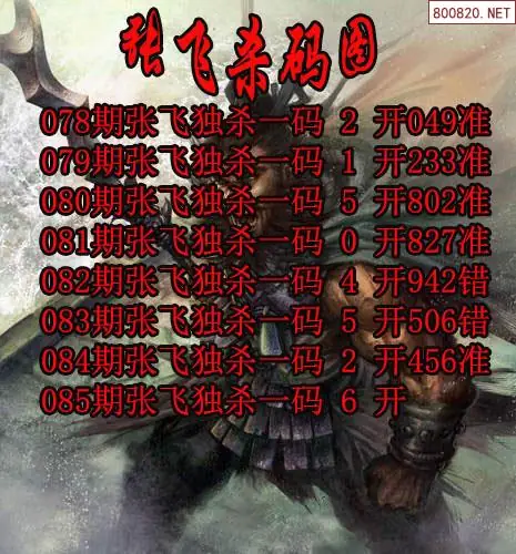 福彩3d26085期张飞3d杀码图谜(天齐网发布)