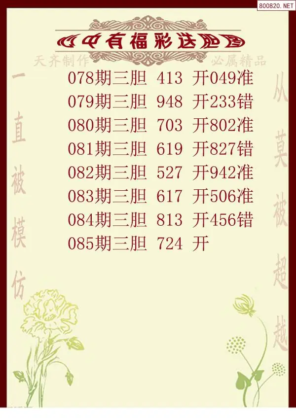 2026年085期心中有福福彩送胆图谜(天齐网原创)