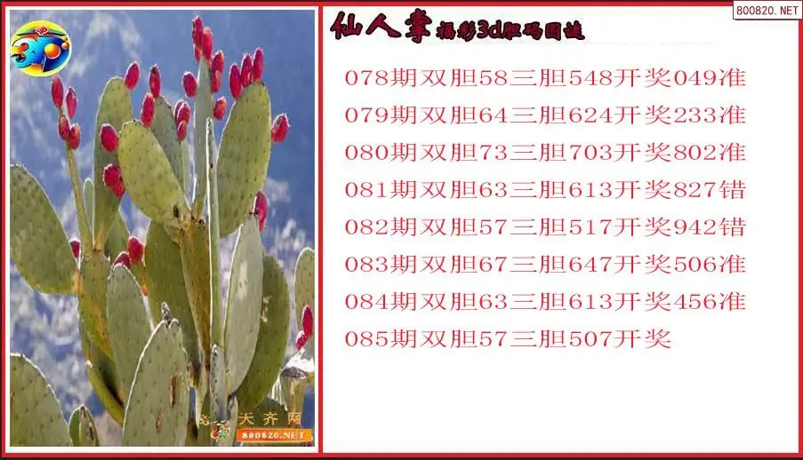 仙人掌2026085期福彩3d胆码图谜(原创)