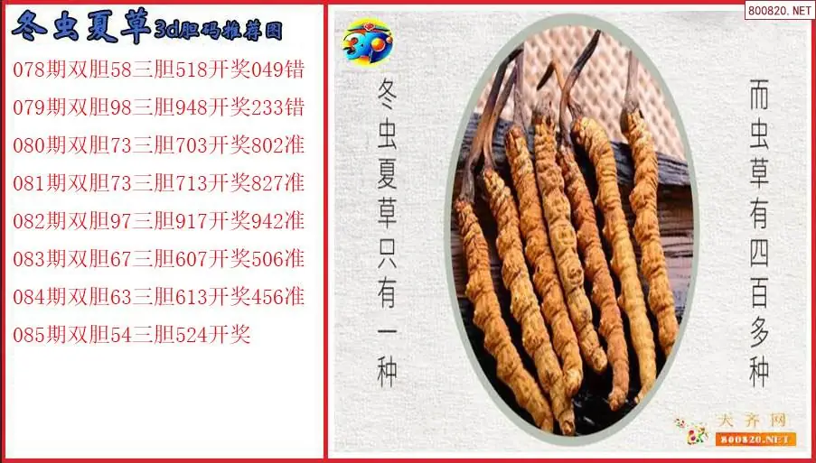 冬虫夏草2026085期3d胆码推荐图(原创)