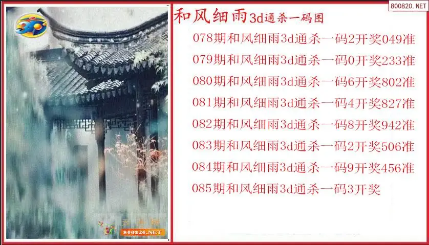 和风细雨2026085期3D通杀一码图(原创)