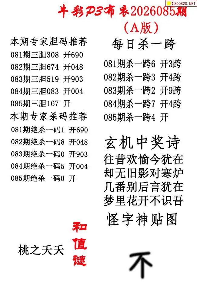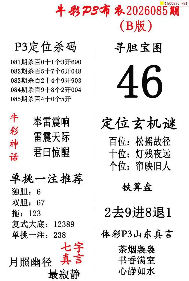 牛彩体彩P3布衣2026年085期AB版图谜(精华版)