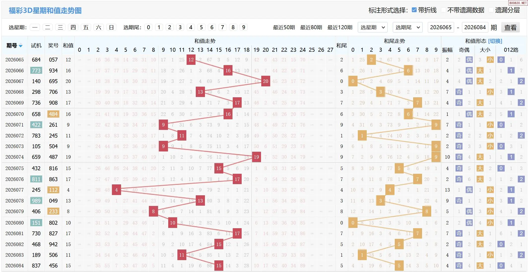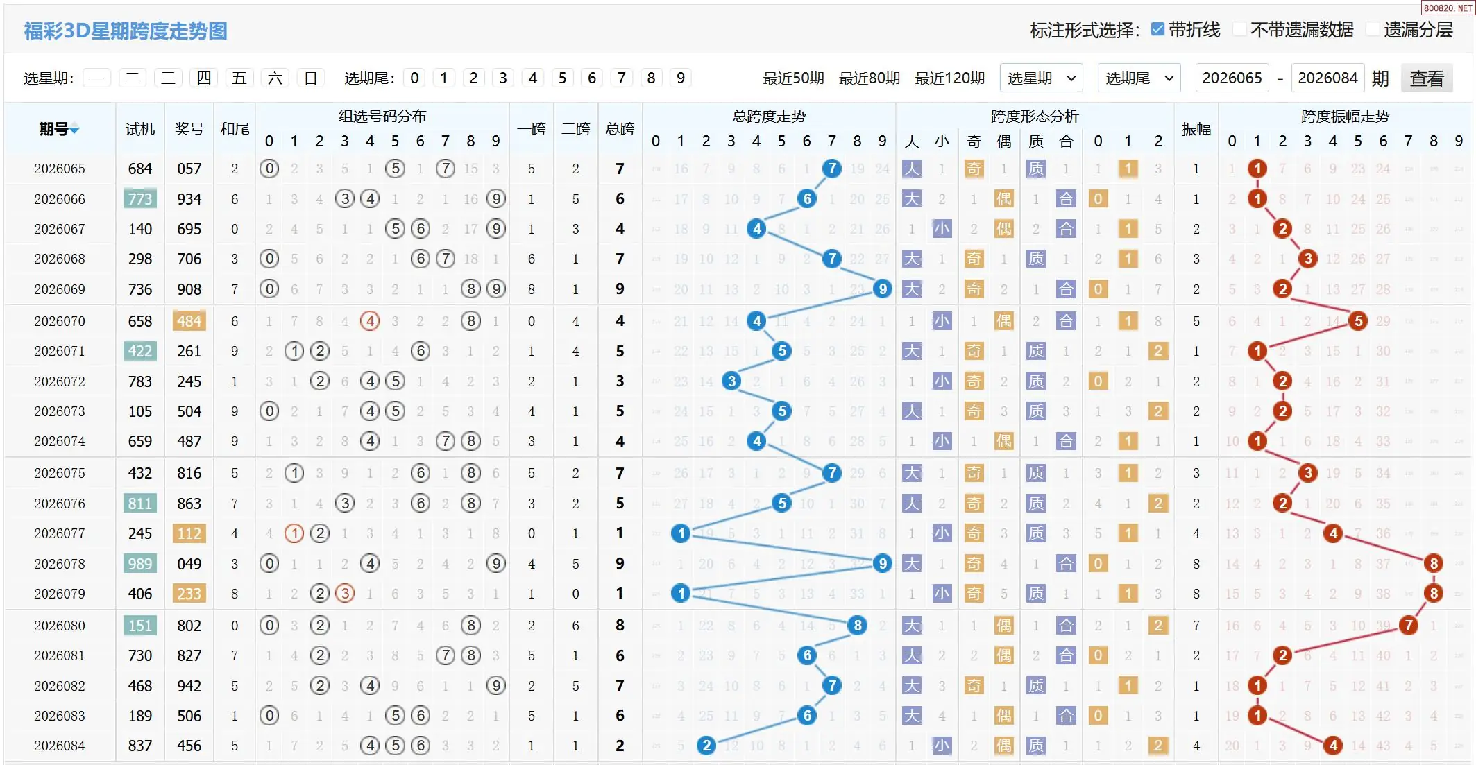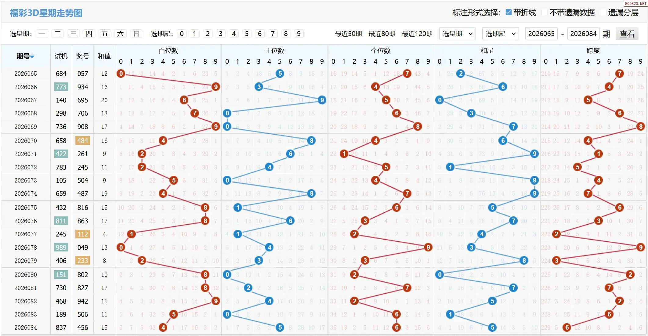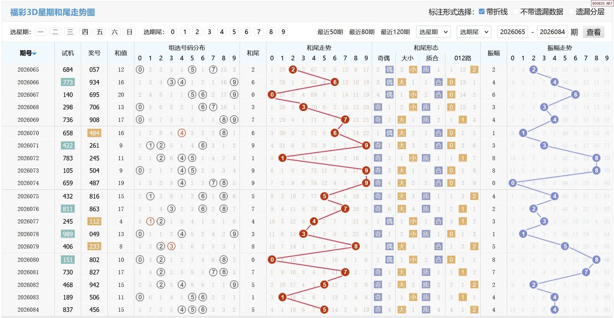 2026085期福彩3D基本走势图如下: