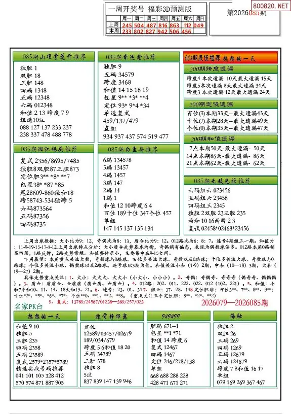 2026年085期精华布衣3D全图