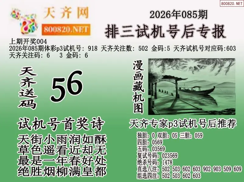 2026年085期体彩p3试机号后天齐网专报