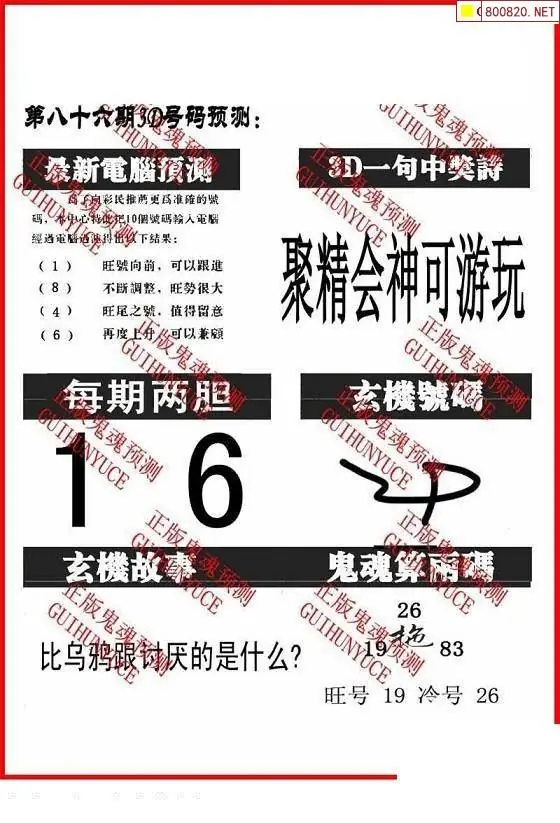 鬼魂图26086期一句中奖诗+鬼魂预测图迷