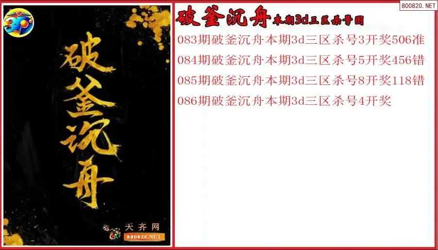 破釜沉舟2026086期本期3d三区杀号图(原创)