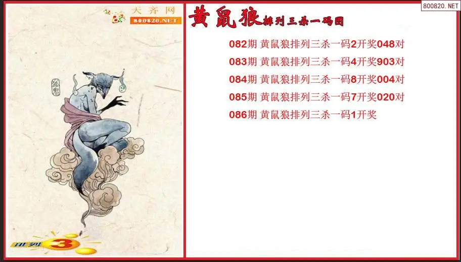 排列3第2026086期黄鼠狼杀一码图(原创)