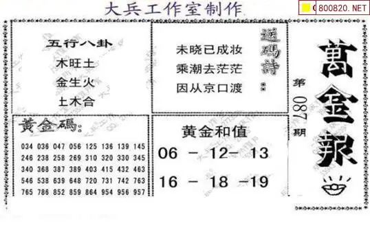 大兵图26087期万金报黄金报望月图谜
