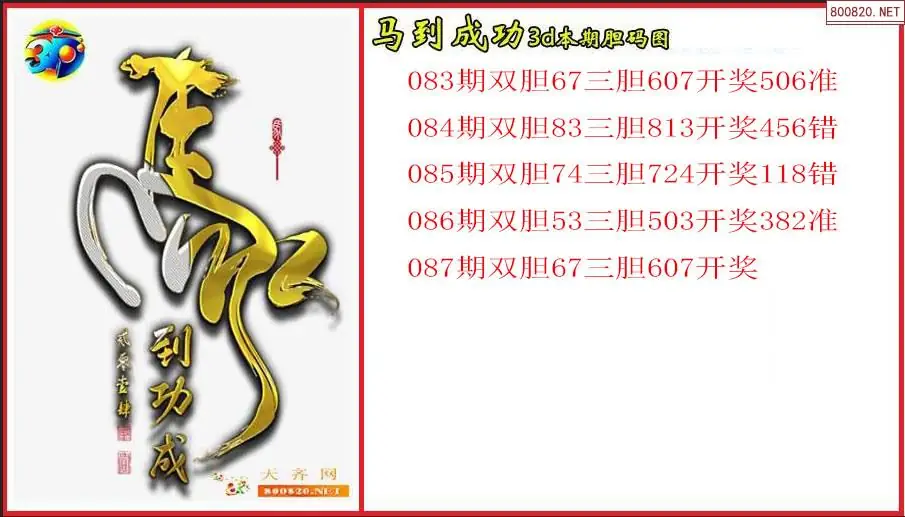 马到成功2026087期本期3d胆码图(原创)