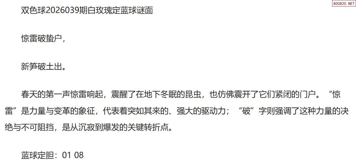 双色球26039期白玫瑰定蓝球字谜
