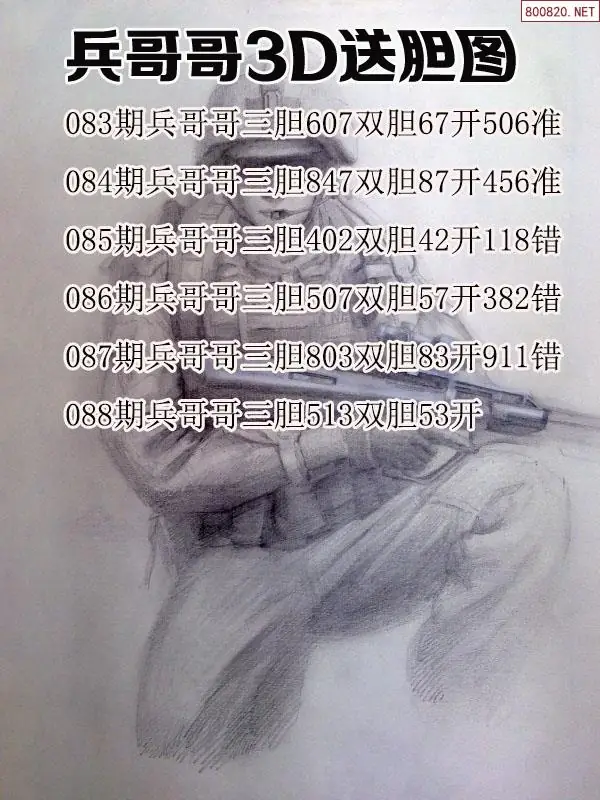 2026088期兵哥哥3d三胆图谜(天齐网原创)