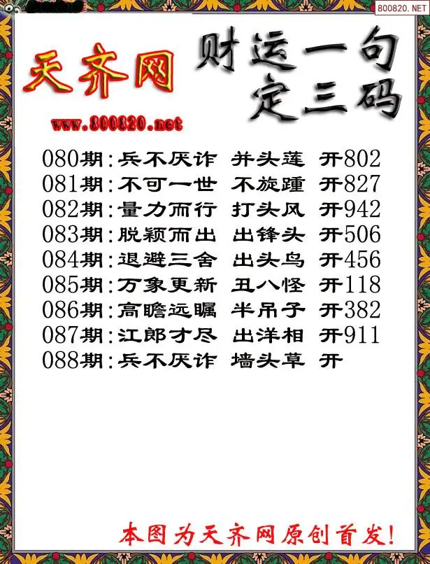 088期财运3D一句定三码字图谜