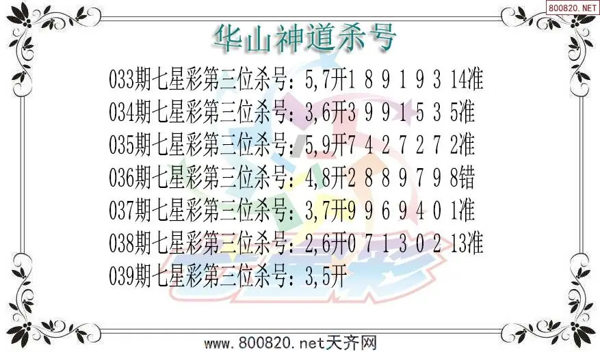 华山神道26年039期七星彩杀号图谜