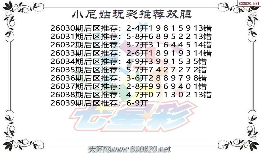 毒霸26年039期七星彩杀号图谜