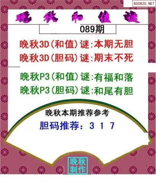 晚秋图26089期3d晚秋和值迷图谜版